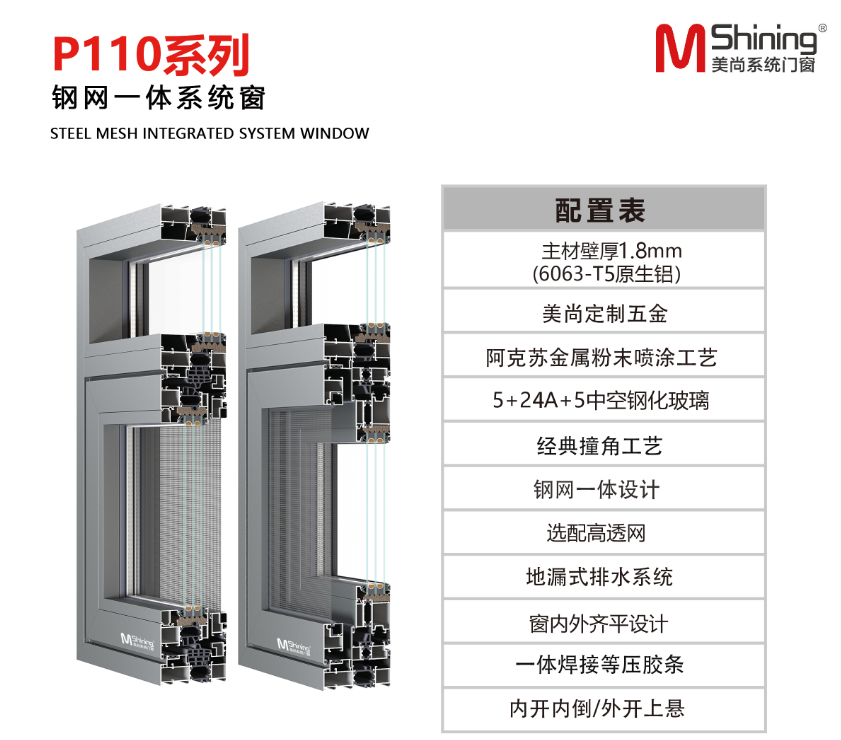 美尚P110系(xi)列钢网一体(ti)体(ti)系(xi)窗凭仗其全功效特征,为您(nin)供🌺给(ji)一站式(shi)的家居处理计划(hua)。不管是(shi)宁静、节(jie)能、隔音,仍是(shi)雅(ya)观,美尚P110系(xi)列钢网一体(ti)体(ti)系(xi)窗都能知(zhi)足您(nin)的需要,让您(nin)的糊口加(jia)倍(bei)夸姣。